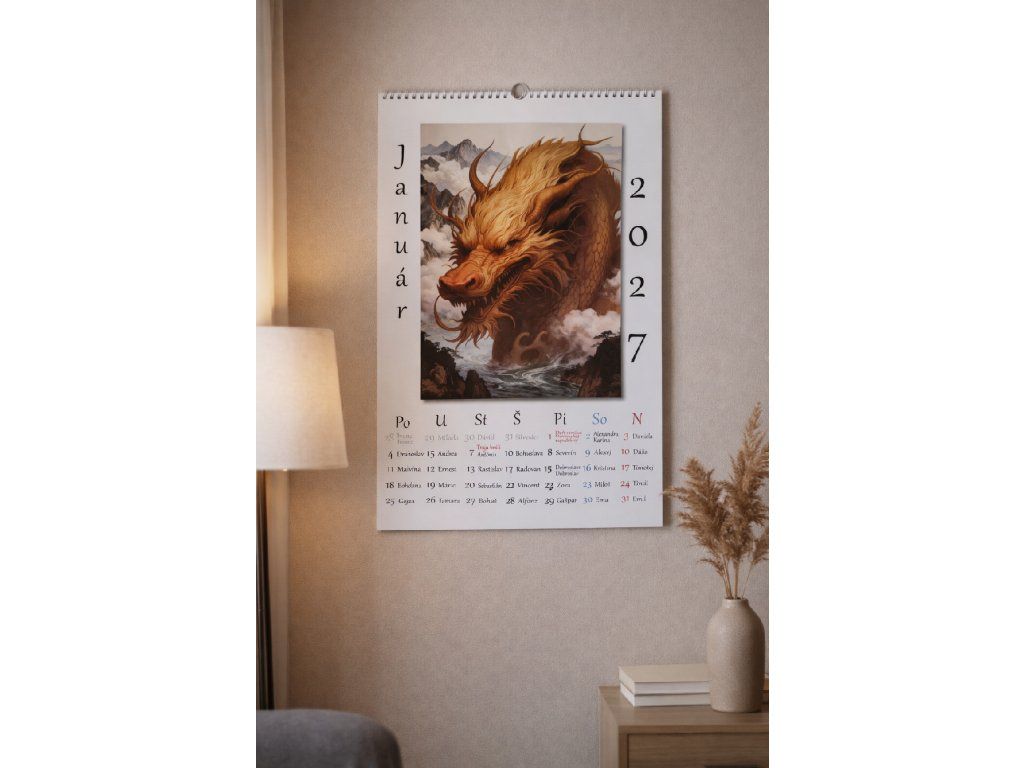 Objavte svet legiend, mystiky a starodávnej symboliky s nástenným kalendárom Draci 2027. Tento jedinečný kalendár vás počas celého roka prevedie fascinujúcim svetom drakov – mýtických bytostí, ktoré v mnohých kultúrach symbolizujú silu, múdrosť, ochranu a prírodnú energiu.