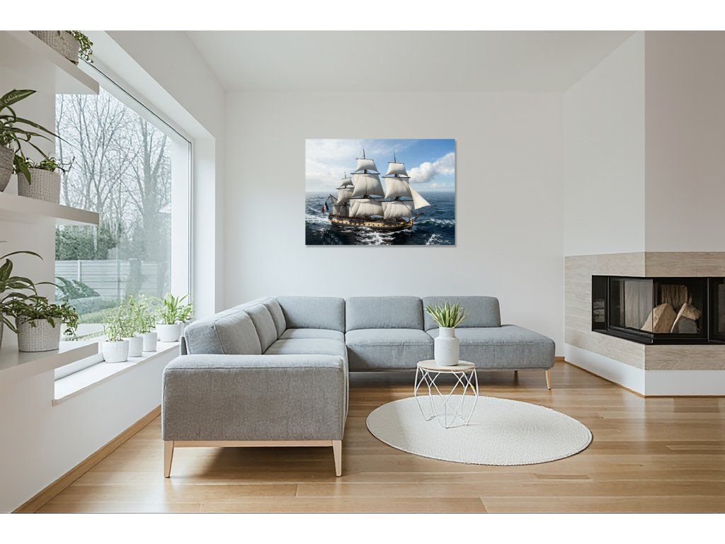 Tento obraz na plátne zachytáva majestátnu historickú plachetnicu plaviacu sa po otvorenom mori. Motív evokuje dobrodružstvo, objavovanie nových svetov a silu oceánu. Elegantná kompozícia lode s napnutými plachtami a nekonečný horizont mora vytvára pôsobivú dekoráciu, ktorá zaujme v každom interiéri.